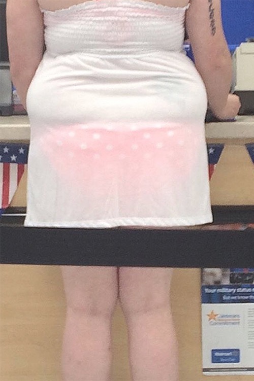 Make way for the red white and blue. Walmart wouldn't be complete without somebody's underwear either not showing up or falling half down.