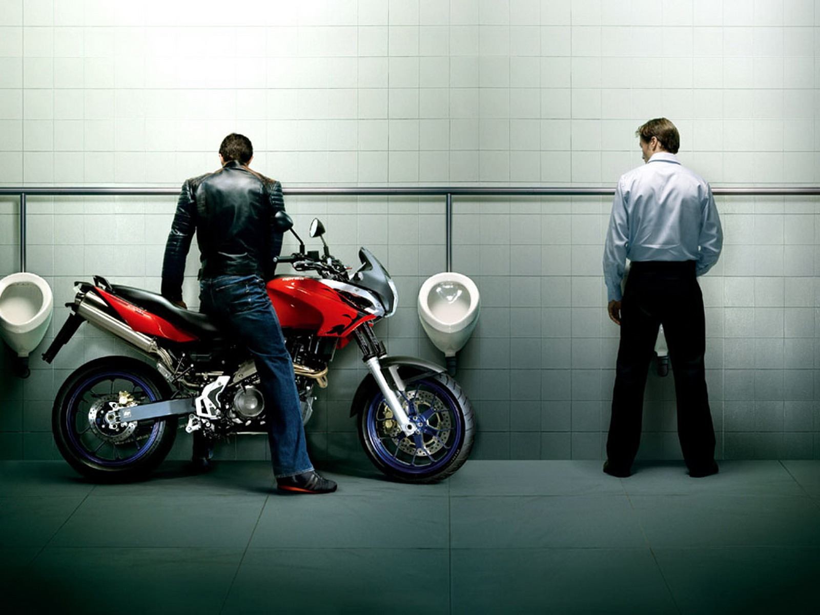 If you have to pee really bad and you don't want to get off of your new bike, just drive on in on your bike and have one long relaxing pee on your bike.