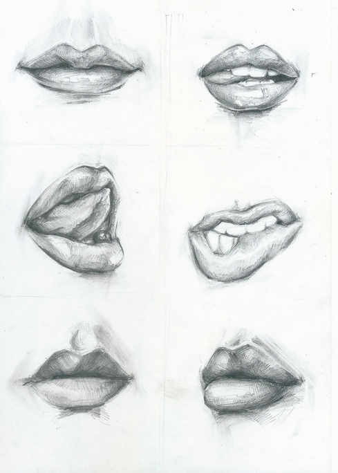 Pencil Drawing Of A Lady's Mouth from a different angles.