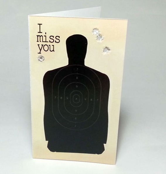 Nothing says it better than "I MISS YOU!" except when it's adorned with bullet holes because you actually missed while taking shot at your ex-husband or ex-wife!