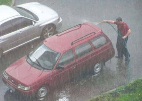 This guy was like What is the best time of day to wash a car? well when it's raining and not just raining when it's pouring rain