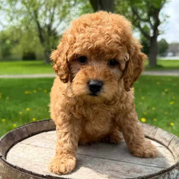 Theodore, our charming Micro Goldendoodle puppy with a deep red coat and an even deeper love for cuddles! Affectionately called “Theo,” this little guy is the perfect blend of gentle and playful. His soft, curly fur is hypoallergenic and irresistibly snuggly—ideal for cozying up on the couch or tagging along on family adventures. Theodore has a calm, thoughtful nature, often watching the world around him with curious eyes before jumping in with enthusiasm. He’s intelligent, eager to please, and already picking up on routines with ease. Whether he’s following you around the house or trotting beside you in the yard, Theo loves to be near his people and thrives on connection. With his sweet temperament, stunning red coat, and lovable personality, Theodore is sure to grow into a loyal and affectionate lifelong companion. #amazing #beautiful #pretty #pets