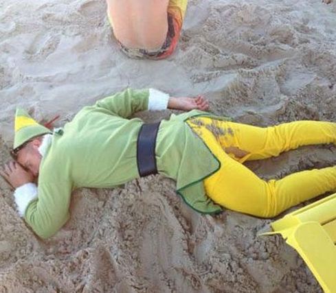 We have no word yet if this is a Peter Pan or an elf but we do know he is not responding when you poke him with a stick, so at this time we can say he is wasted, reporting live from Daytona Beach Fl.