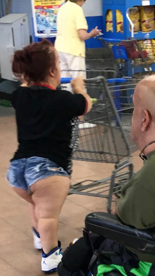 The Walmart look is alive and well nobody how tall you are. Looking trashy is an equal opportunity fashion statement!