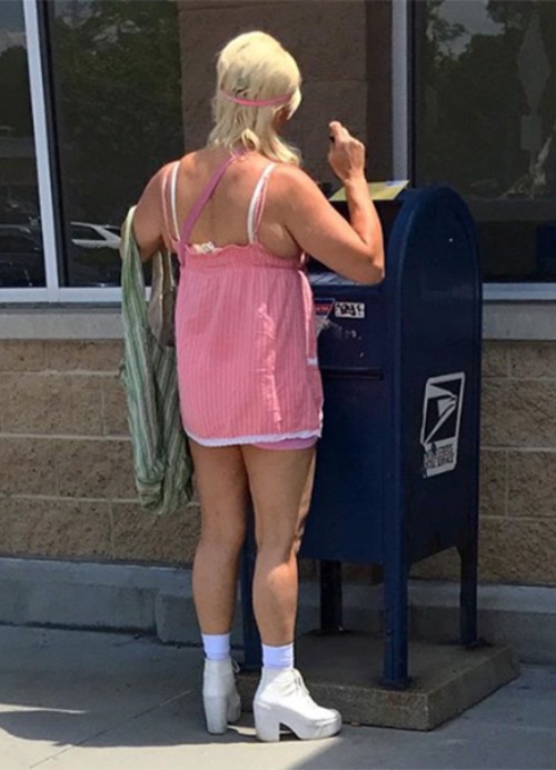 This is definitely a Walmart exclusive. Pretty in pink camisole and white platform shoes. It looks like she just woke up and put on her platform shoes for Walmart.