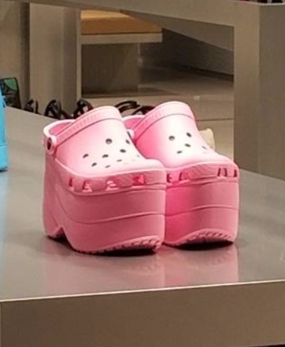 These are guaranteed to be a new fashion trend. Pink platform crocs from Walmart. Just when you thought crocs were finished.