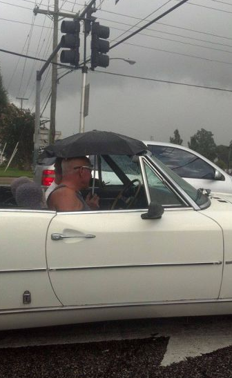 Driving the convertible in the rain is the what I like to call planing ahead but making sure you have an umbrella in the car is.