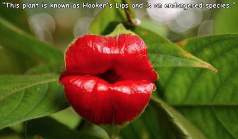 This plant looks like real lips with red lipstick. No wonder it's an endangered species.