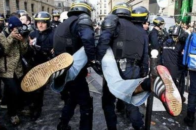 Police officer carry out the man that was creating loud sounds and threatening to kill himself