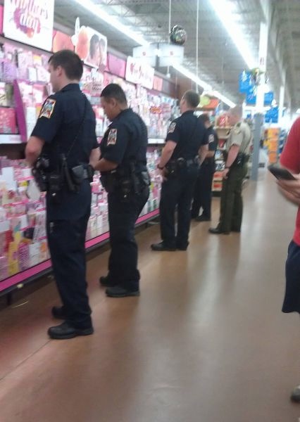 I never so saw many police officers at walmart. Did the cops forget their mom and they are picking up cards last minute?