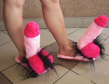 Pop Out Of Bed and Put On Pink Hairy Man Thing Slippers
