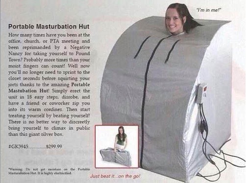 This portable masturbation hut will provide hours of enjoyment and the privacy you need. There is no better way to discreetly bring yourself to climax in public.