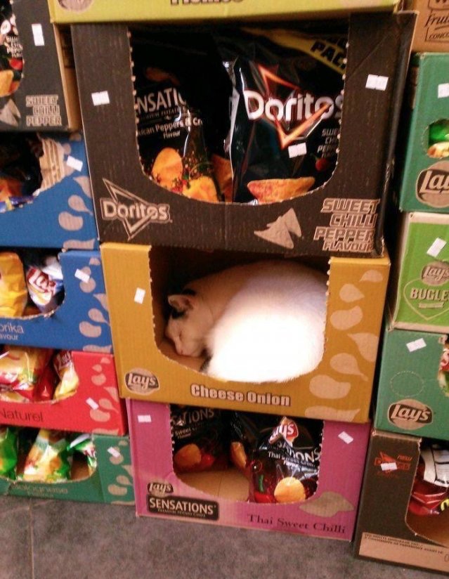 I went to buy a bag of potato chips at Walmart and this cat ate them all.