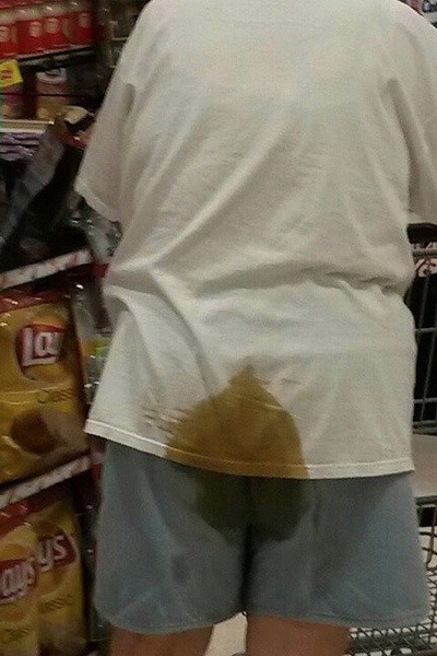 Wow this guy is all ready for a party. He's got the chips and an extra large order of dip on his butt. People can just pull up a chair and dip in.