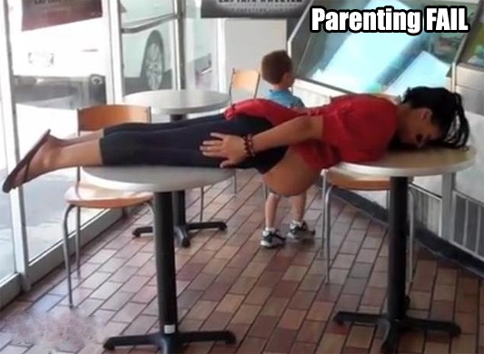 Pregnant Mom Planking Between Two Tables - Don't Try This Parenting Fail At Home!