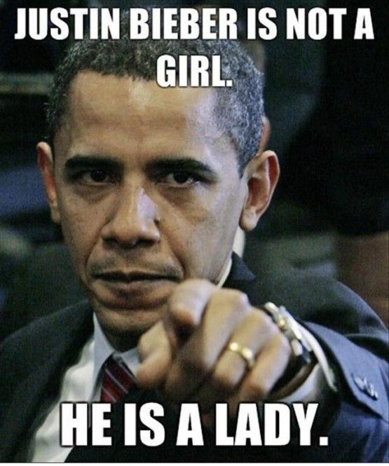 Watch you mouth because the president is watching you. The rumor doing rounds is not true. This is a fact backed up with the high and mighty. Justin Bierber is not a girl...he is a lady!