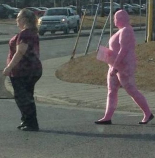 When you go all pink why not go all out? Not only have the pink top and pink leggings but pink everything. I hope she can breathe!
