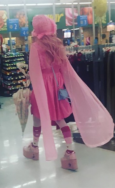 Here's something you don't see very often: a princess carrying an umbrella. Other than that the rest is all commonplace especially at Walmart.