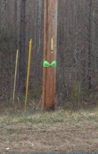 Somebody decided to dress this pole up a bit. You can see it looks a lot better now. I wonder if some girl gave up her top?
