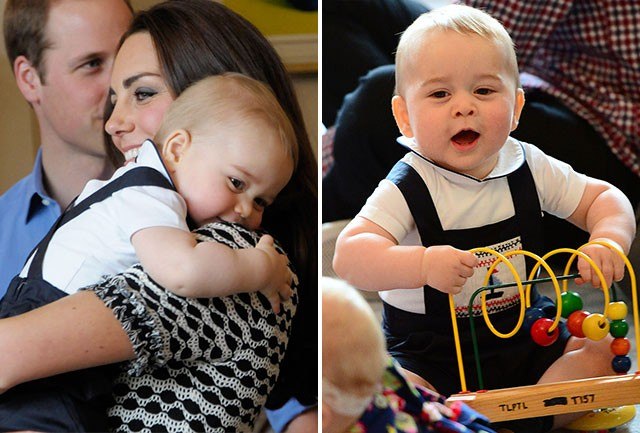 The third-in-line for the throne of England has reportedly behaved like a true Prince in waiting during his first official engagement. Prince George played blocks and shared crawl space with ten other chosen babies on Wednesday at Government House in New Zealand. This is the young prince's first overseas travel with mom, Duchess Kate, and dad, Prince William. Prince George was wearing a blue Rachel Riley dungaree shorts with a sailboat on the front - which would undoubtedly be sold out pretty soon. Apparently, he only made one other baby cry over a battle of the blocks.
