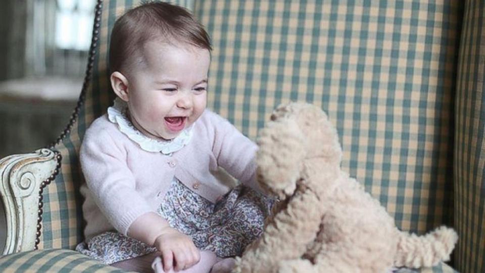 6-month-old Princess Charlotte is now the fourth-in-line to the throne and has already captured many hearts all over the world. Here she's seen laughing adorably at her stuffed dog!