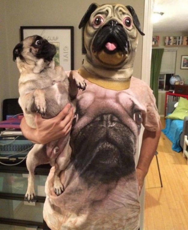 Take a pug selfie with your pug in a pug shirt and pug face mask.