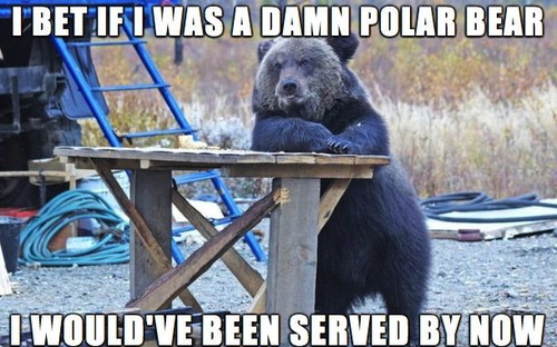 Poor bear. He isn't a white polar bear and that's why he isn't being served. There should be a clamor for justice within the bear community. No to racial inequality.