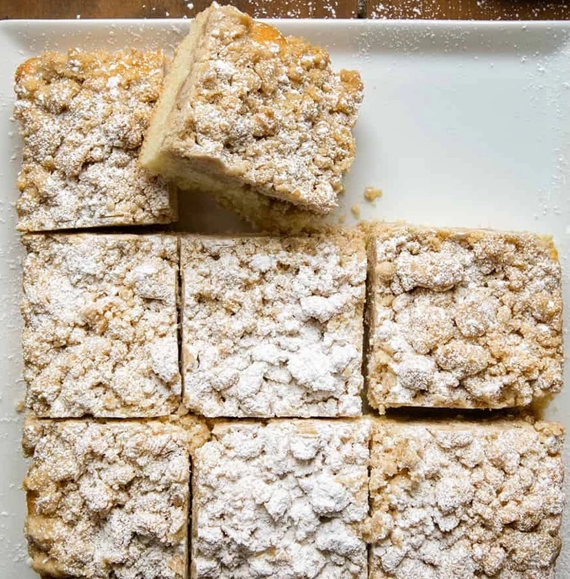 There won't be any crumbs remaining when you serve this cake. It's great for breakfast, brunch, as a snack or a dessert. The cake is soft and buttery with a crumb topping that is to die for.