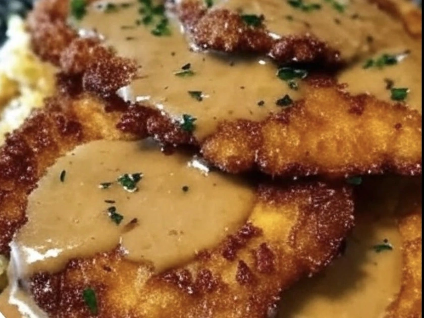 Serve immediately with the Dijon gravy poured over the schnitzels.