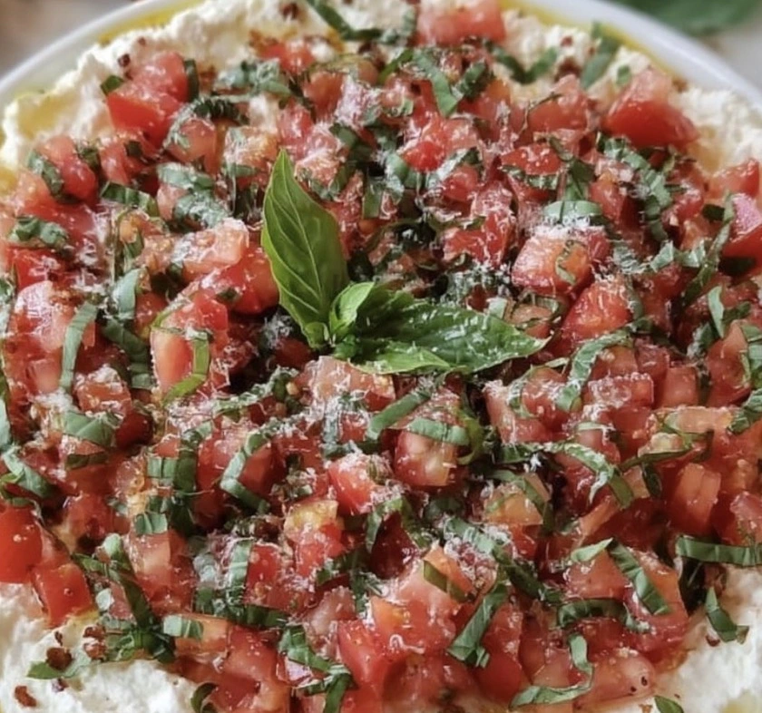 This delicious, vegetarian appetizer can be ready in as little as 15 minutes and is perfect for any occasion or gathering. It's a creamy dip that's chock full of the typical bruschetta ingredients.