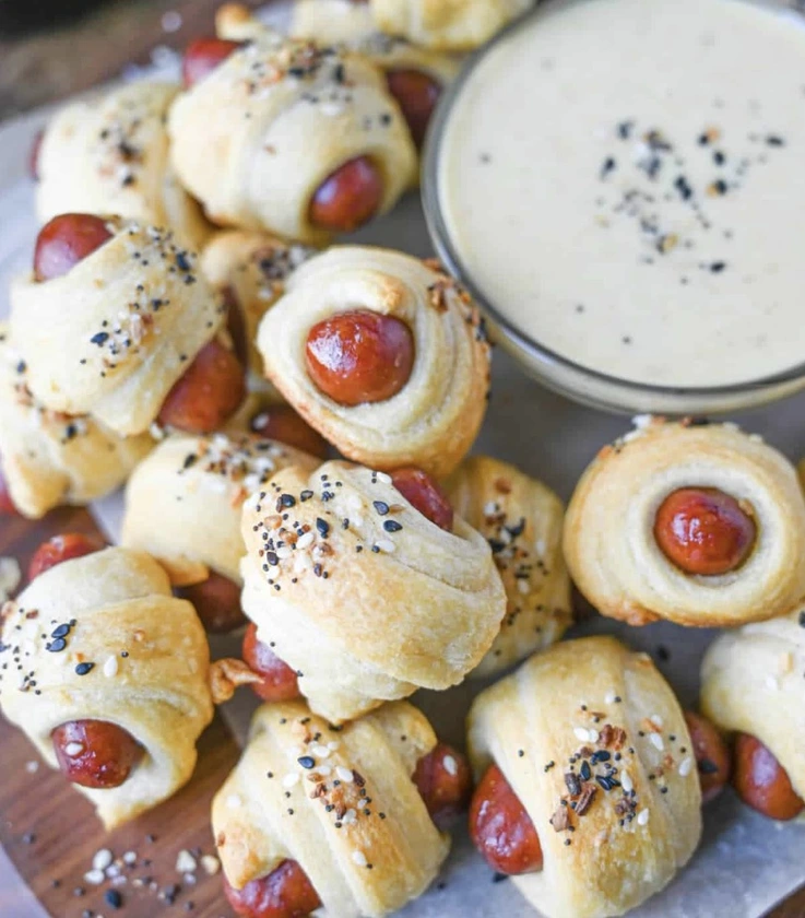 These little bite-size smokies are wrapped in crescent roll dough and baked until perfectly brown. Serve them with a honey mustard dip for a delicious experience. They are the perfect appetizer to serve to a crowd or perhaps a light meal.