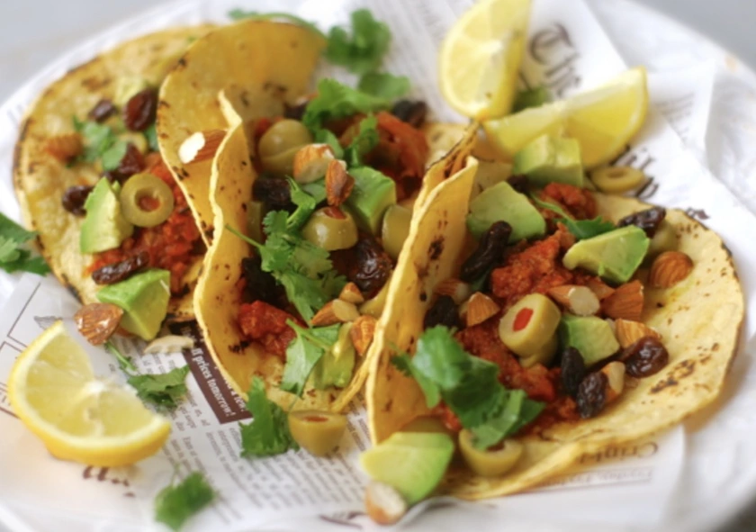 These tacos will surely impress family and friends. They are the Cuban version of the classic dish. They start with savory ground beef, a mixture of different flavors that are sweet and tangy like pimento stuffed green olives and raisins.