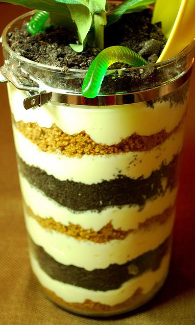 9.Repeat layering 3 to 4 times. Top off entire pot with 1" of cookie crumbs.
