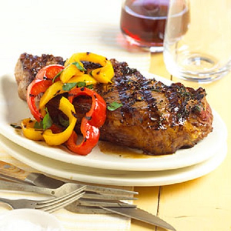 3. To serve slice steaks across the grain. Serve with sweet pepper rings.