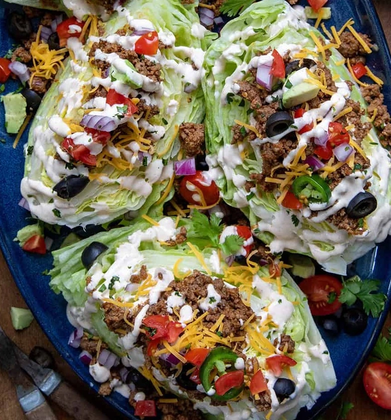 Love a good taco but want it a bit healthier? Try this taco wedge salad and get the same flavor and deliciousness without the shell. Add a few tortilla strips for the crunchy texture and it's the perfect Taco Tuesday meal.
