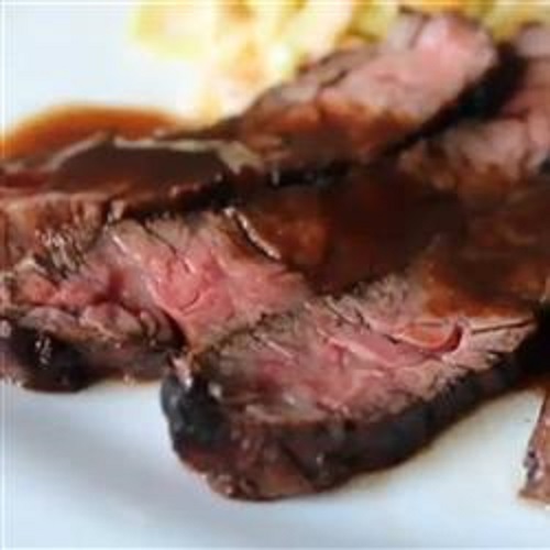 7. Remove meat to a platter and let rest for at least 5 minutes before slicing thinly across the grain to serve. Drizzle servings with reduced coffee-cola marinade.