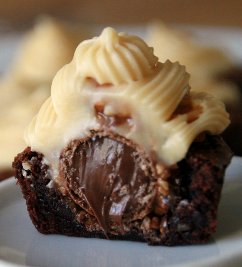 Prepare brownies according to package directions. Grease a mini-muffin tin with cooking spray and fill each cup approximately 3/4 full with batter. Bake for 12-15 minutes until a toothpick inserted comes out clean. Remove from oven and immediately press a candy into the center of each brownie bite. (The top of the candy will protrude a bit from the brownie...it's OK...you'll cover it with icing.) Cool for a couple of minutes in the tin then carefully remove the brownie bites from the pan to a cooking rack. Allow to cool completely.