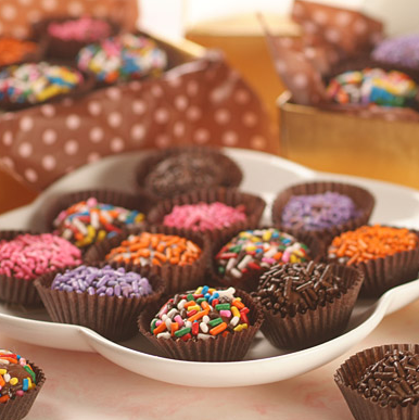 A traditional Brazilian candy made from sweetened condensed milk, cooked until it has a golden brown color and a rich, caramel flavor. Roll in colored sprinkles, toasted coconut, or ground nuts, and flavor them with vanilla, almond, or cinnamon—the possib