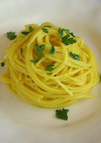 Drain pasta, reserving 1 cu. pasta water. Add 1 cu. pasta water to the pan with the olive oil and lemon. Whisk until thickened. Add the sauce to the pasta and toss well to combine.