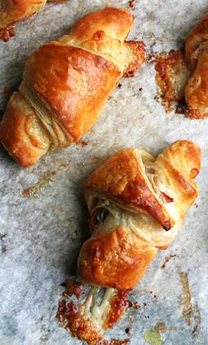 A little cheese, a little prosciutto in a croissant.>.all I can say is YUM!