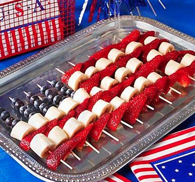 Build a red, white and blue American flag for your holiday out of fresh fruit! Kids can help build this healthy dish and then have fun eating it later!