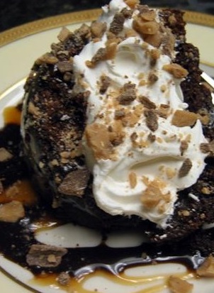 The best ever chocolate cake with Cool Whip, sweetened condensed milk, caramel topping and last but not least, a Heath candy bar. YUM!