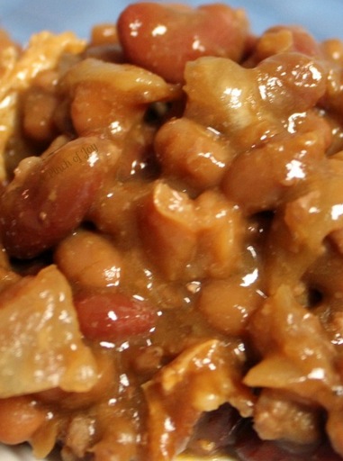 What a great variety of beans in this dish. Four different kinds of beans, onions, ground beef, bacon and brown sugar make this a dish that you will want to have often!