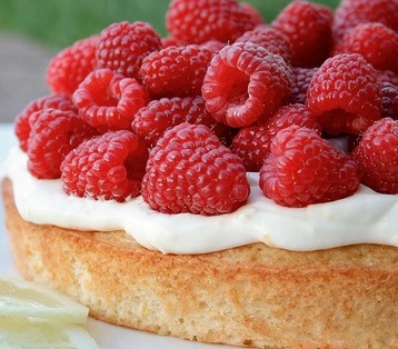 You will love this dessert because it is light, sweet with a hint of lemon and then topped off with delicious raspberries!