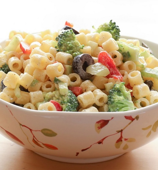 This creamy pasta salad which is light and a little tangy makes a perfect side dish or even a light meal.