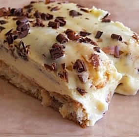 In a small saucepan, combine espresso, 1 ounce grated chocolate, Kahlua, vanilla and remaining 2 Tablespoons marsala. Heat gently, and stir to dissolve the chocolate. Then, chill the mixture to cool it down, about 15 minutes. Quickly dip each ladyfinger in the chilled coffee mixture and arrange in a single layer on a 9x13-inch pyrex pan. Do not soak the cookies or they will become too moist. (Just quickly dip them in and out).