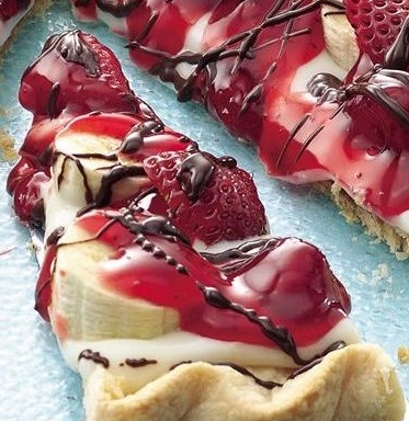 Make an easy dessert with refrigerated pie crusts and yogurt that reminds you of a banana split!