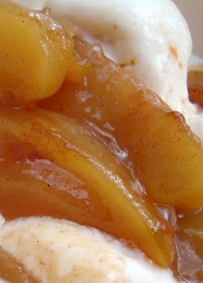 Very carefull lift the lid to allow steam to escape. Spoon warm apple topping over ice cream and serve with cookies, if desired.