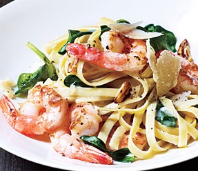 Add shrimp and spinach to your fettuccine, cut down on salt, oil and butter to make a healthy version of this wonderful dish.