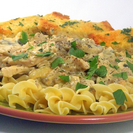 Chicken Mushroom Stroganoff Over Egg Noodles